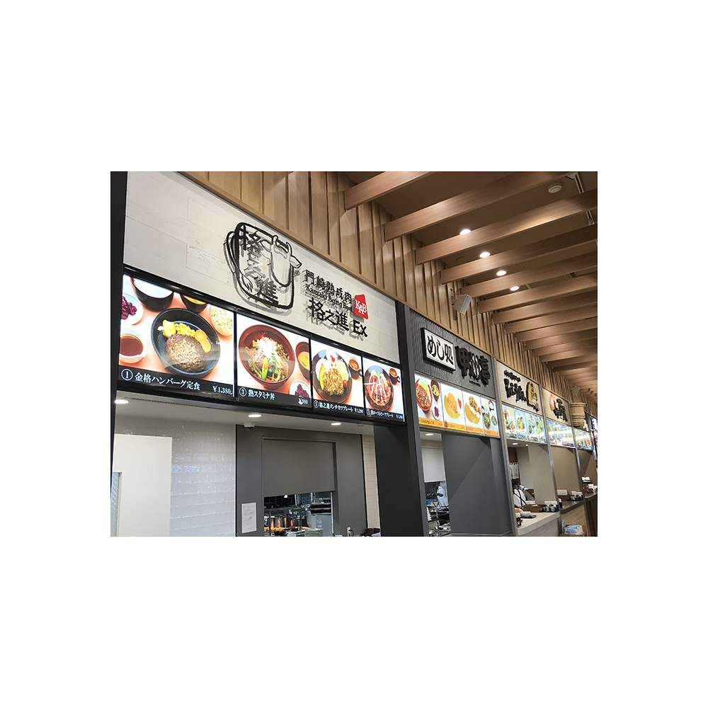 上下2辺のフレームが開く細身シルエットのLEDパネル。フードコート等でのメニューサインとして大好評の商品です。