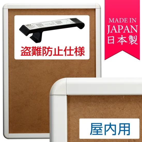 盗難防止機能付き。専用オープナーでポスターフレームを開閉します。