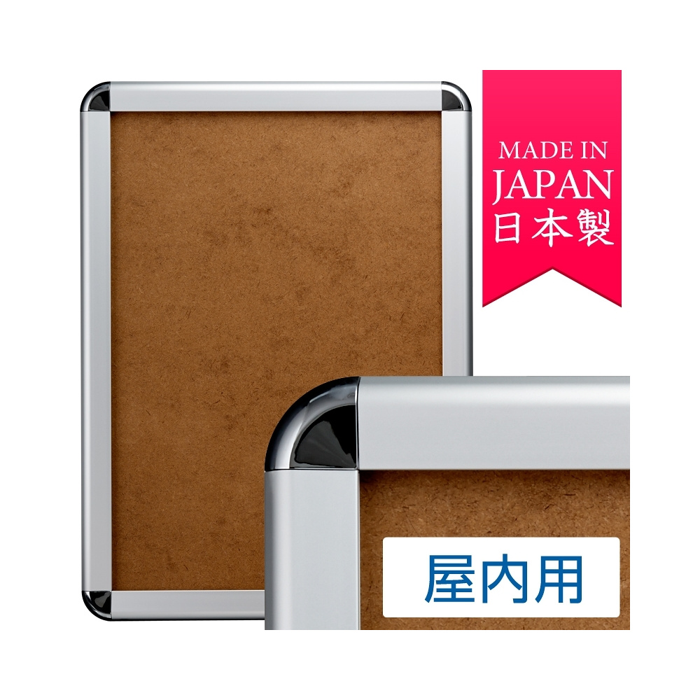- 壁面に取付けたまま、手でフレームが開けられて、ポスター入れ替えができる4辺開閉式のポスターフレームです。