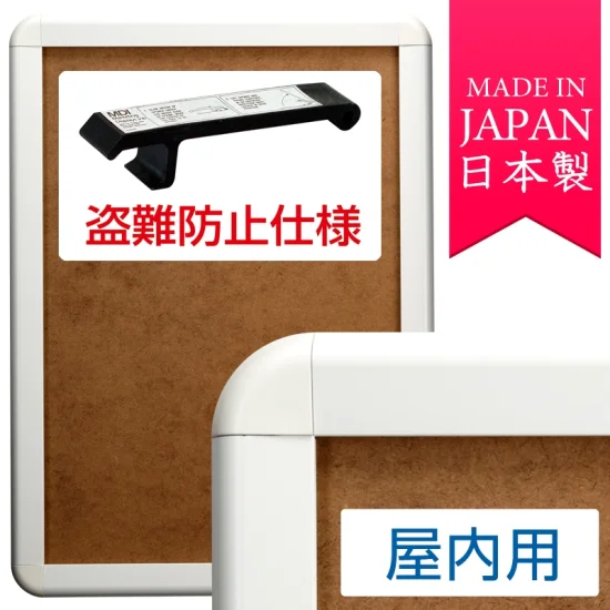 幅広タイプの盗難防止機能付き。専用オープナーでポスターフレームを開閉します。