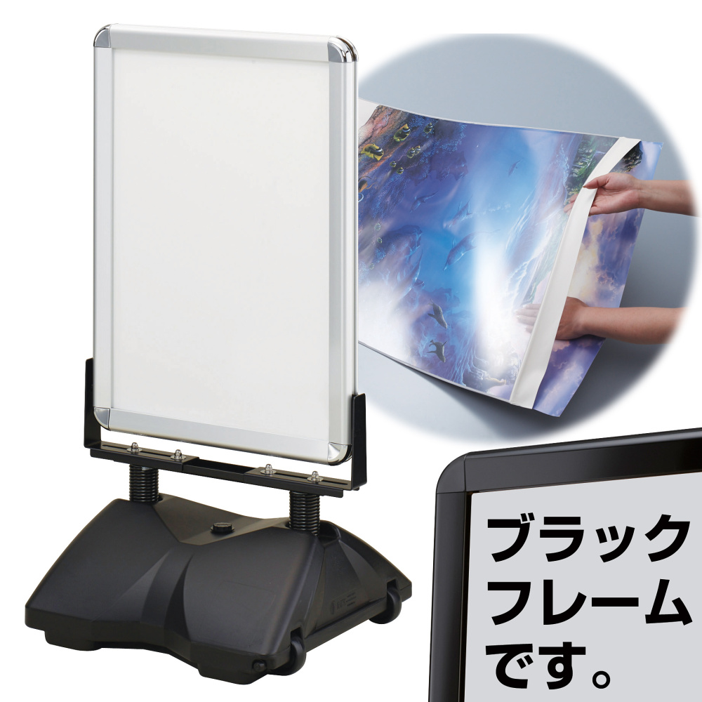 商品説明:ローリングベース たおれん君 スイング式両面看板 B2 防水パック ブラック (RB-PAC-PG44R-B2-BG)