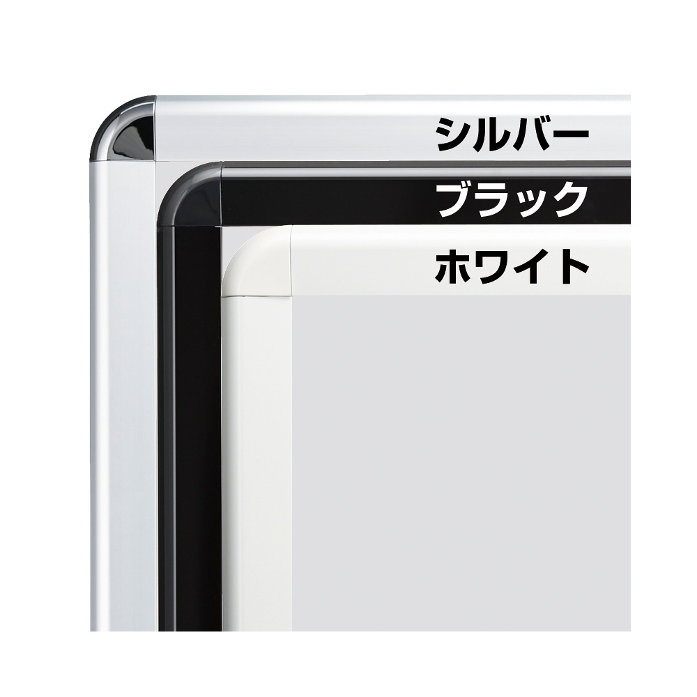 - ポスター交換は4辺開閉式フレームで簡単に行えます。通常レギュラー仕様は手で開けるタイプのポスターグリップPG-44Rです。
