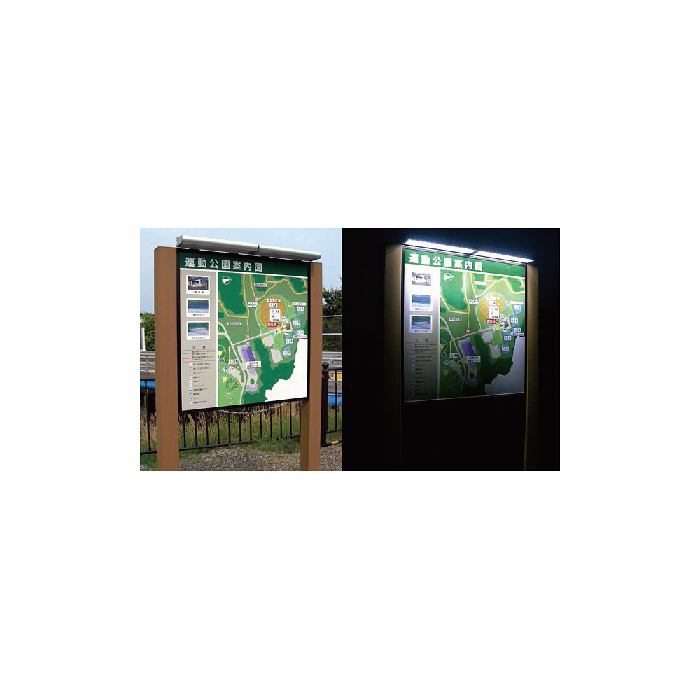 - サイン(標識)表示内容を夜間ライトアップするための後付け可能で配線不要の太陽電池式照明灯です。