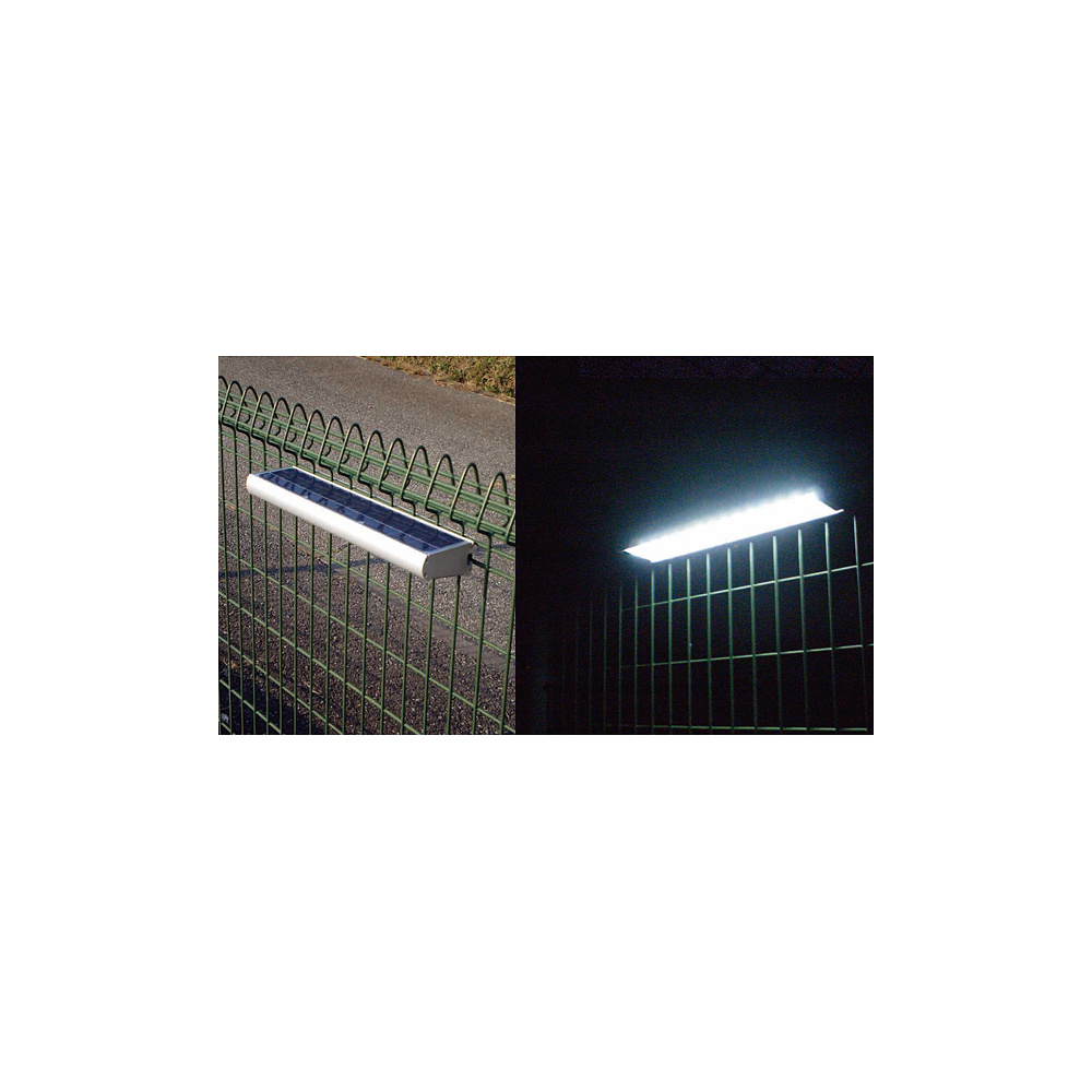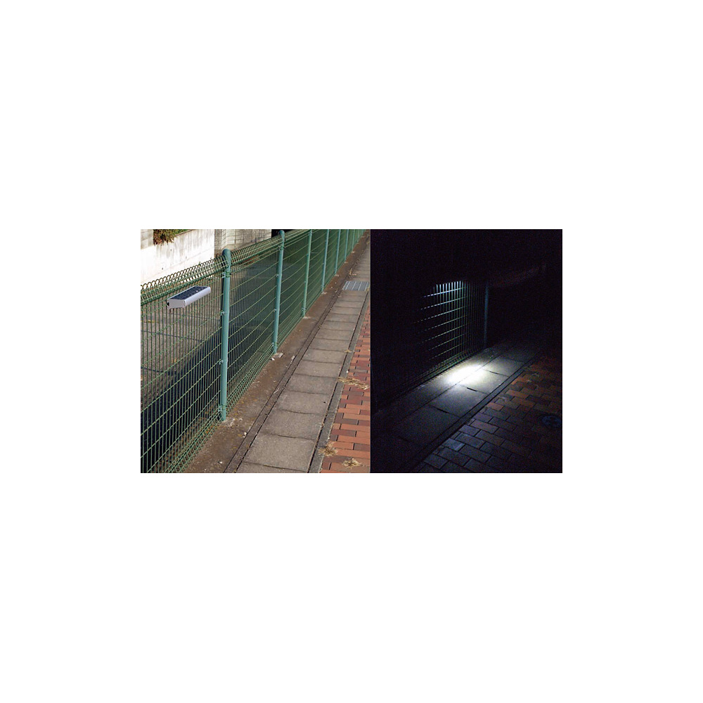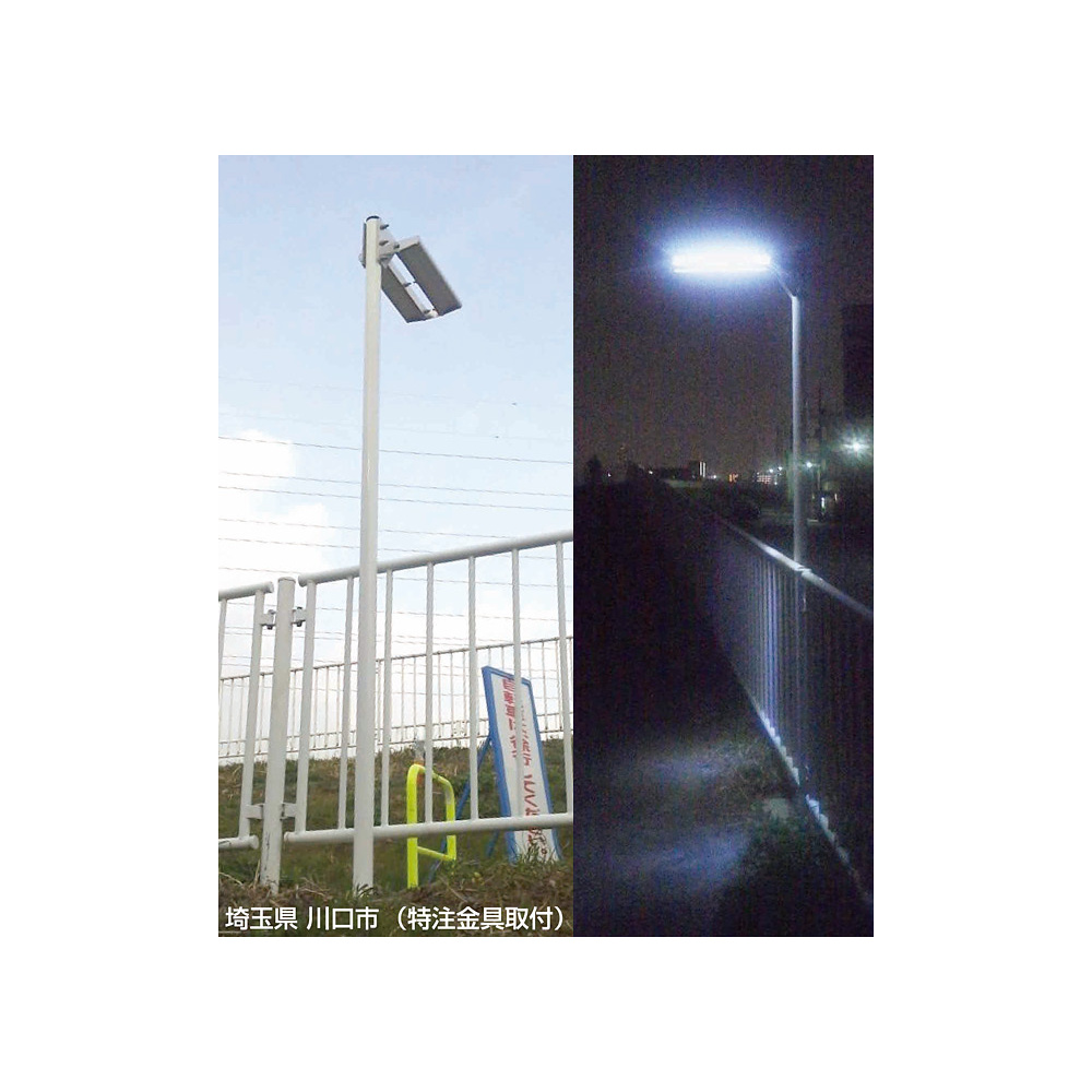 - 緊急時+日常時に、路面や階段を照らす広範囲配光設計の簡易照明です。柵やフェンス、既存支柱等に後付け可能で配線不要のソーラーパネル一体構造です。