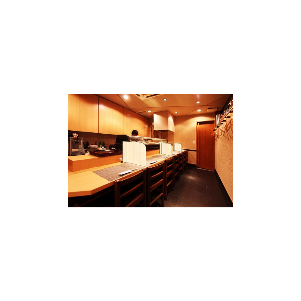 - 圧倒的なコストパフォマンス!飲食店のカウンターの間仕切りとして複数枚が必要な箇所でも最低限のコストで飛沫ガードを設置できます。