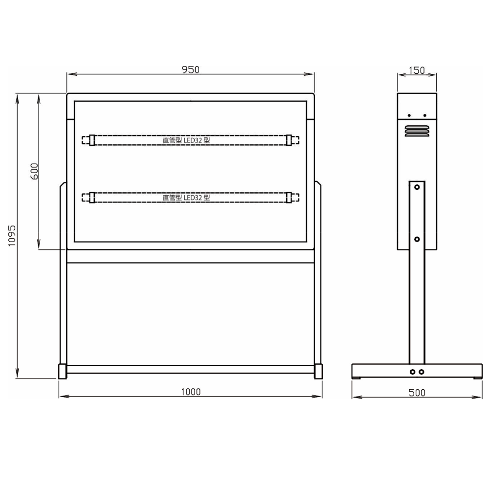 LED大型横型内照式看板(受注生産品) 無地面板2枚付 注水ウエイト5個付 (BigLG-Sign95x60)