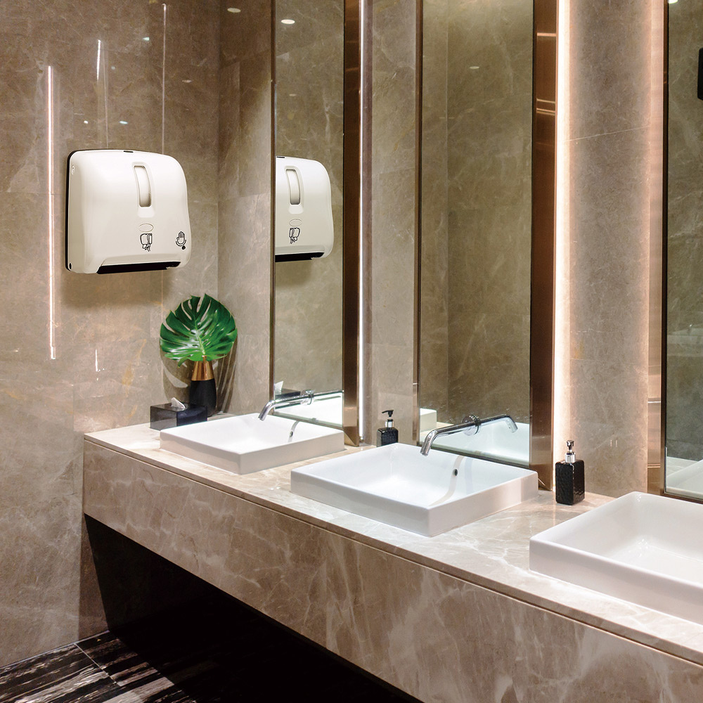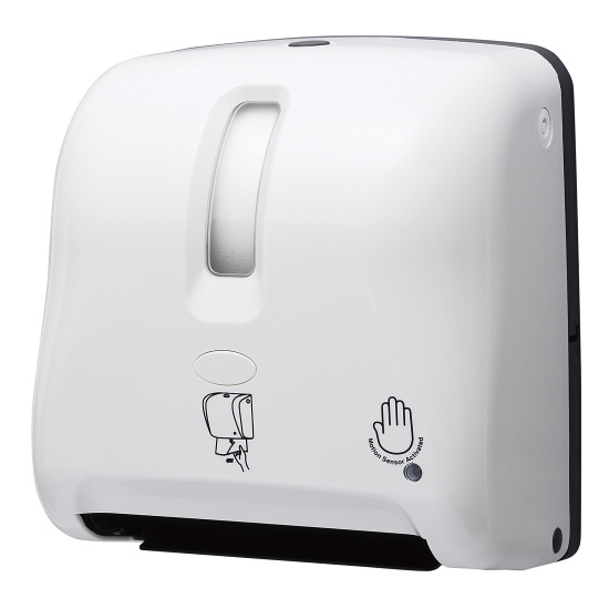 非接触のセンサー式で衛生的!手をかざすと紙が出るので衛生的で安心。