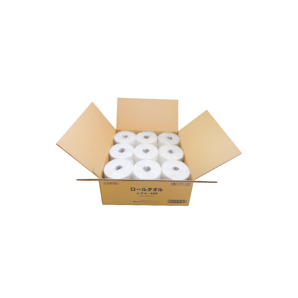 ロールタオルディスペンサー専用ロール紙 ロールタオルソフト400 (パルプ) 9入 (ケース販売) (OT-567-540-0)