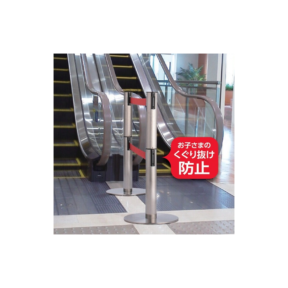 中段の位置にもベルトが付いた2段式ベルトパーテーションです。