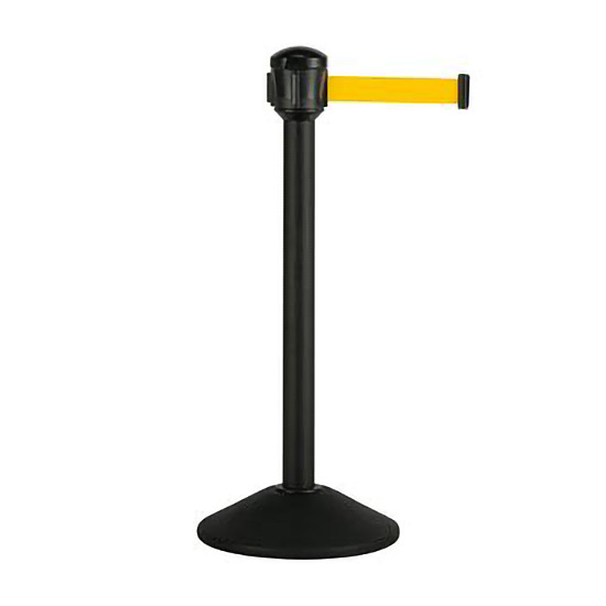 商品説明:テラモト製 屋外対応 ベルトパーテーションAW PEベルト5mタイプ イエロー 黒ポール (SU6617106)