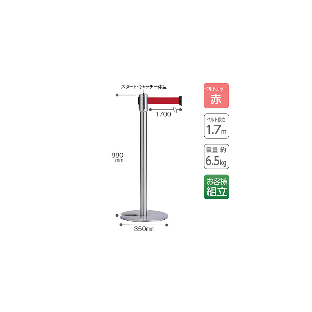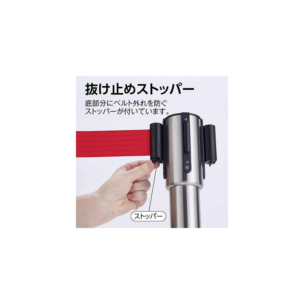 商品説明:サインモールオリジナル ローコスト ベルトパーテーション レッド ステンレス (SM-BP-002)