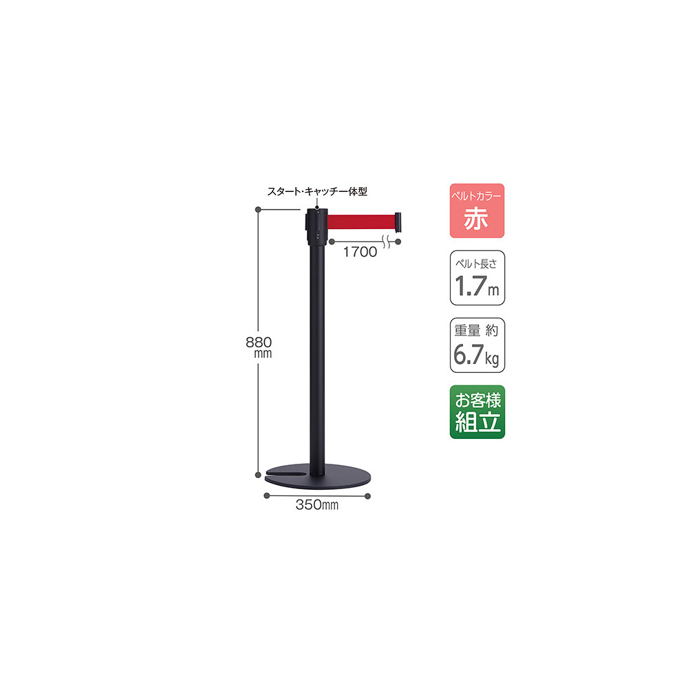 商品説明:サインモールオリジナル ローコスト ベルトパーテーション レッド 黒スチール (SM-BP-102)