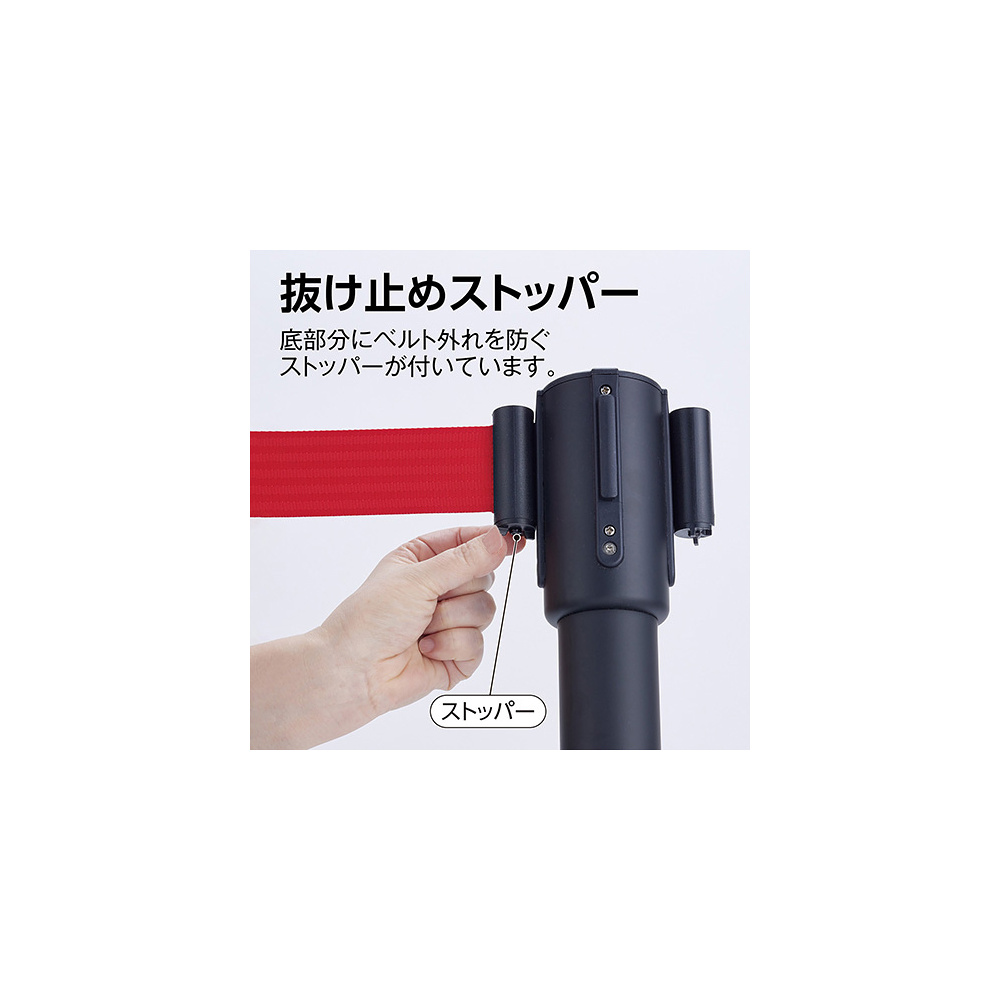 サインモールオリジナル ローコスト ベルトパーテーション レッド 黒スチール (SM-BP-102)