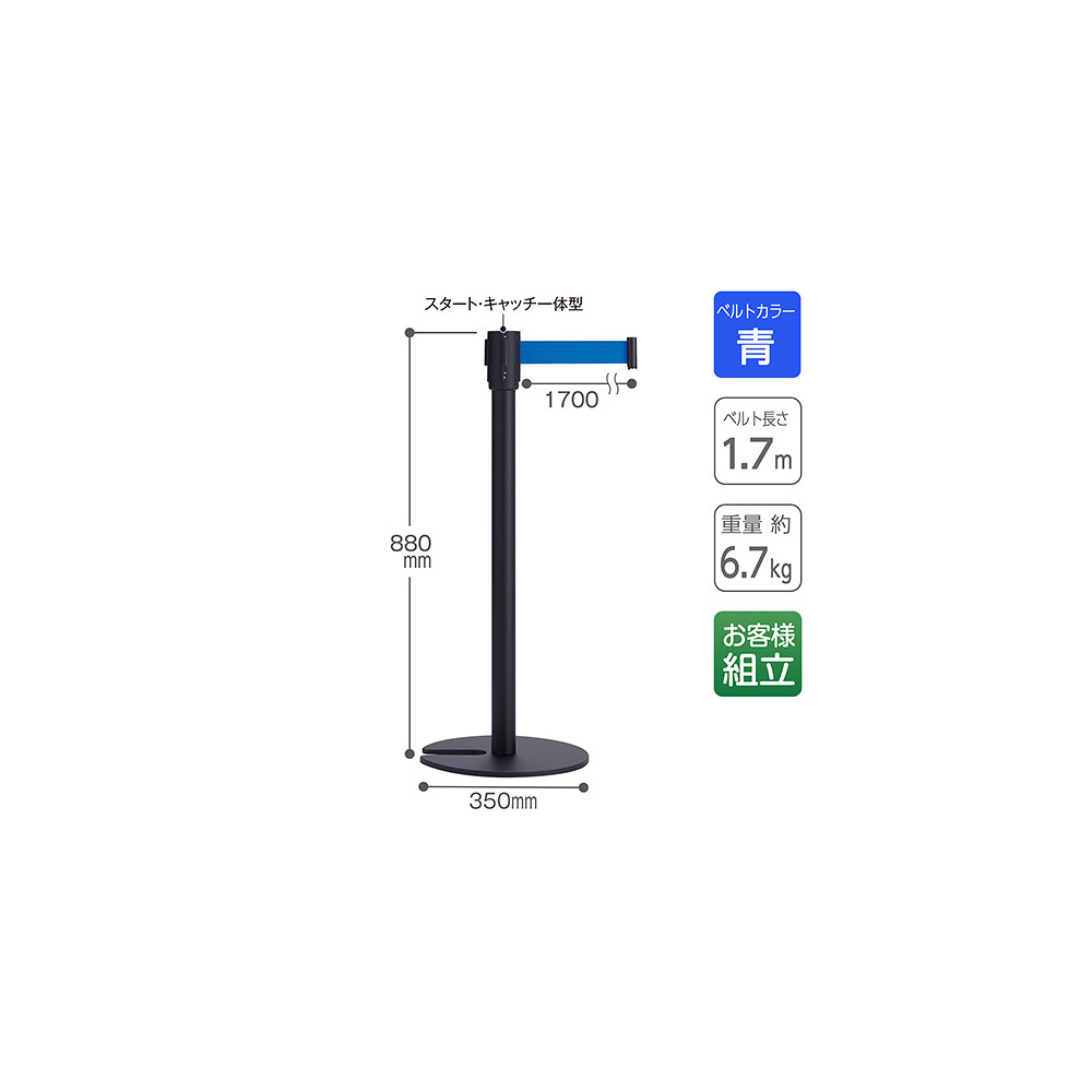 商品説明:サインモールオリジナル ローコスト ベルトパーテーション ブルー 黒スチール (SM-BP-103)