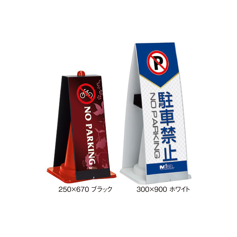 - 三角コーン(カラーコーン)に差し込むだけで簡単にセット出来る屋外対応のお手軽サイン。