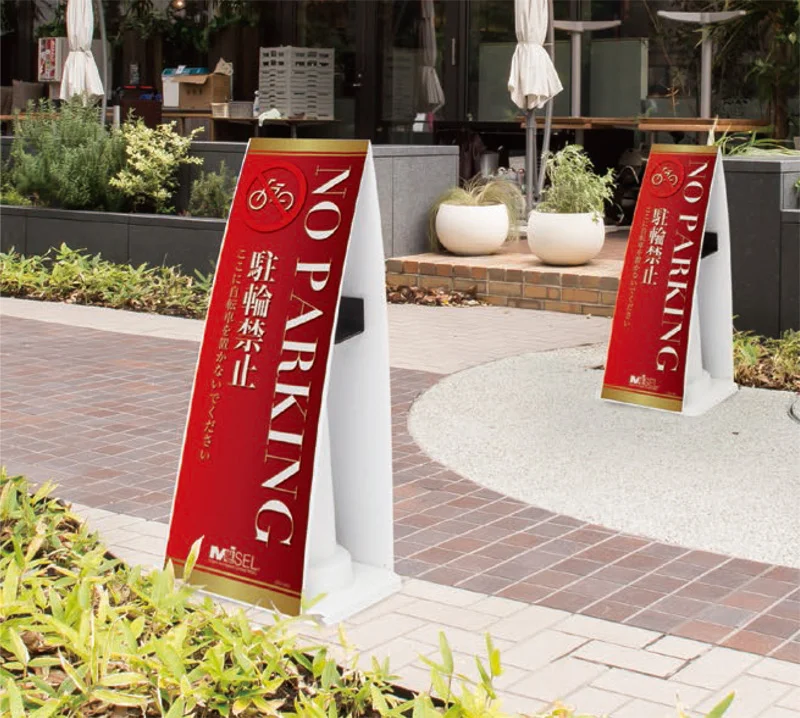 - 使用する場所のイメージに応じたデザインで制作が可能なので店舗のイメージや、景観を損なうことなく告知や注意喚起の打ち出しが可能です。