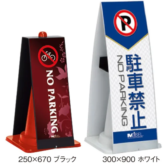 - 三角コーン(カラーコーン)に差し込むだけで簡単にセット出来る屋外対応のお手軽サイン。