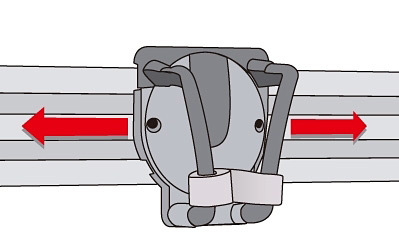 - スライド式モップクリップユニット。クリップ部分を左右にスラ イドさせることができるの で、清掃用品同士の干渉 を防ぐことができます。