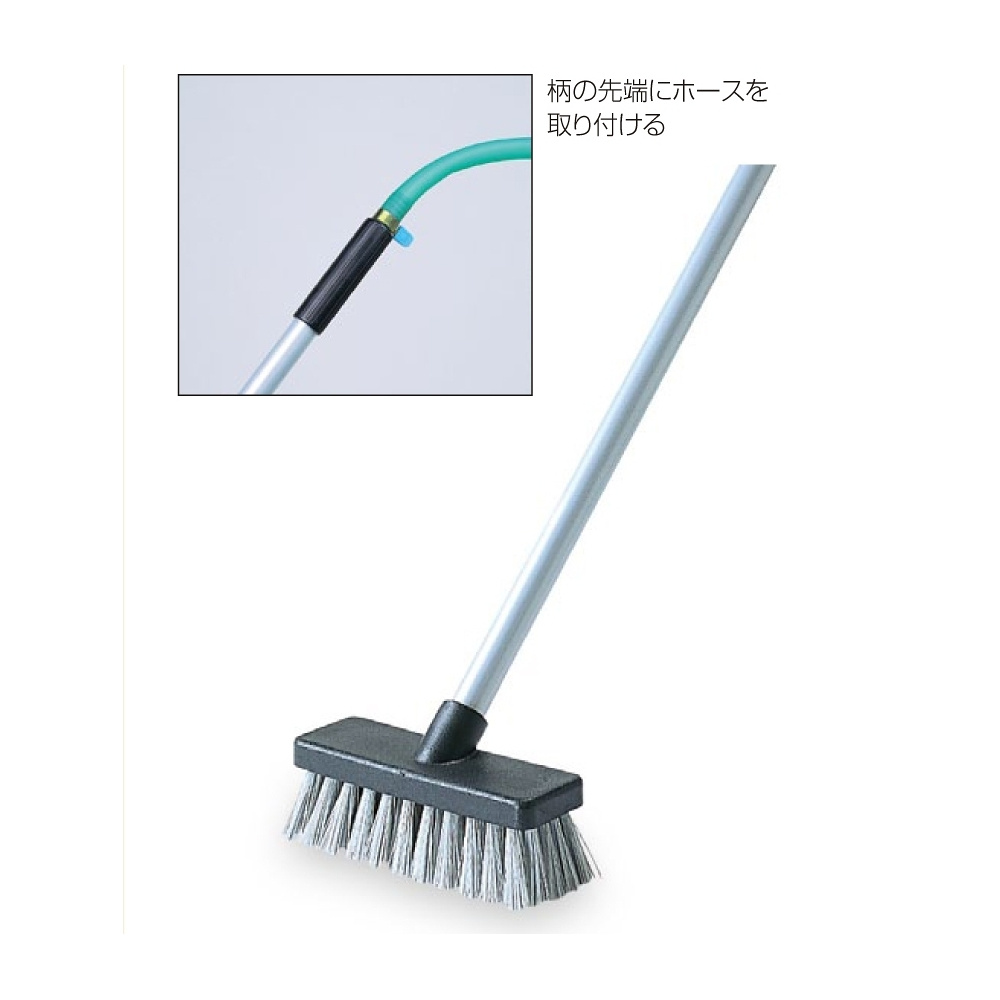 ホースを柄にセットすると、ブラシ部から水が出るので、効率良く洗浄ができます。