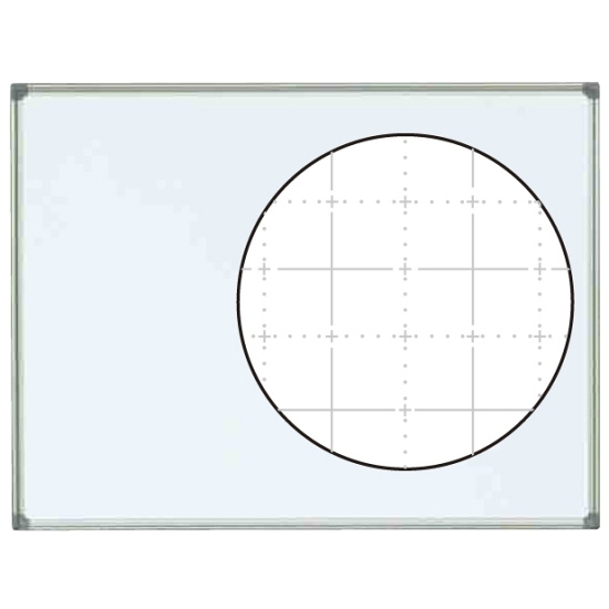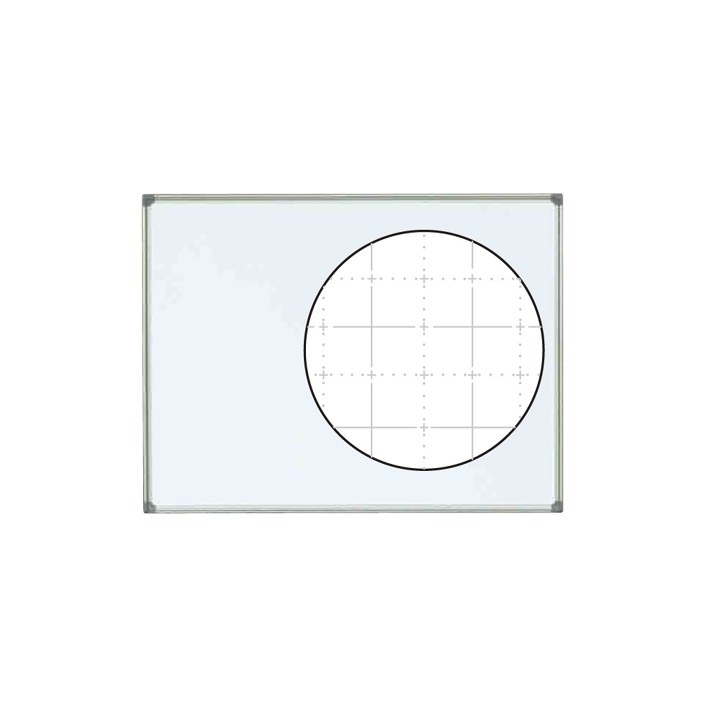 - 暗線はボード表面に同系色のホーロー インキで方眼を焼成加工します ので、半永久に消えません。50mm間隔の点線と実線を組 み合わせた方眼になっており文 字や図形がきれいに書けます。