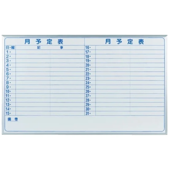ホワイトボード MAJIシリーズ (壁掛) 月予定表 MH35Y 板面寸法 W1510×H910 横書き (MH35Y)