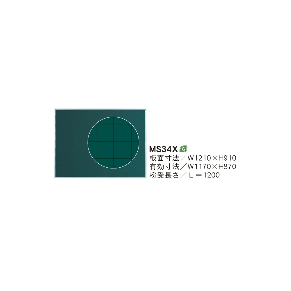 スチールグリーン黒板 MAJIシリーズ (壁掛) 黒板 暗線入 板面寸法:W1210×H910 (MS34X)