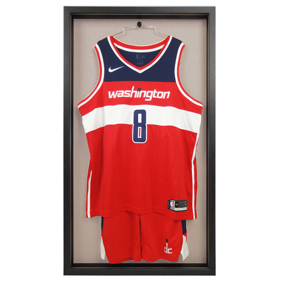 - 「バスケのユニフォームを飾りたいが、普通のケースだとハンガーが見えて恰好悪い」「上下一緒に飾りたい」との要望に応えて製品化されたバスケットボール専用ケース。