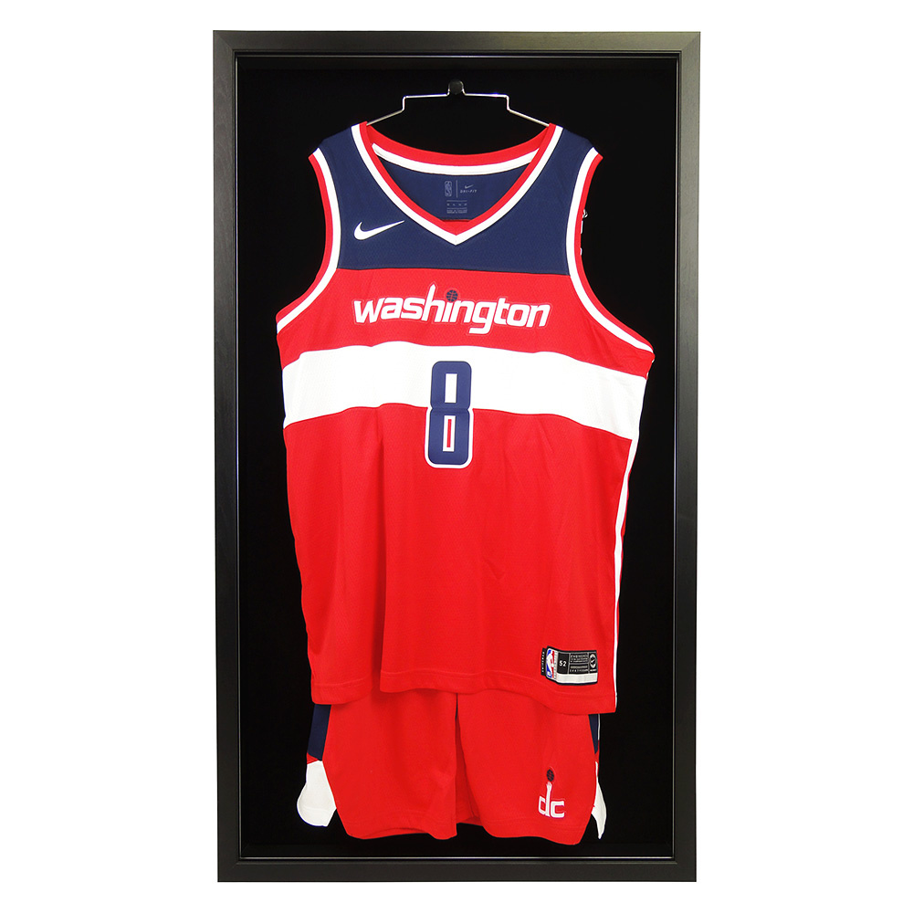 - 「バスケのユニフォームを飾りたいが、普通のケースだとハンガーが見えて恰好悪い」「上下一緒に飾りたい」との要望に応えて製品化されたバスケットボール専用ケース。