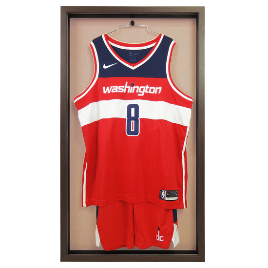 - 「バスケのユニフォームを飾りたいが、普通のケースだとハンガーが見えて恰好悪い」「上下一緒に飾りたい」との要望に応えて製品化されたバスケットボール専用ケース。