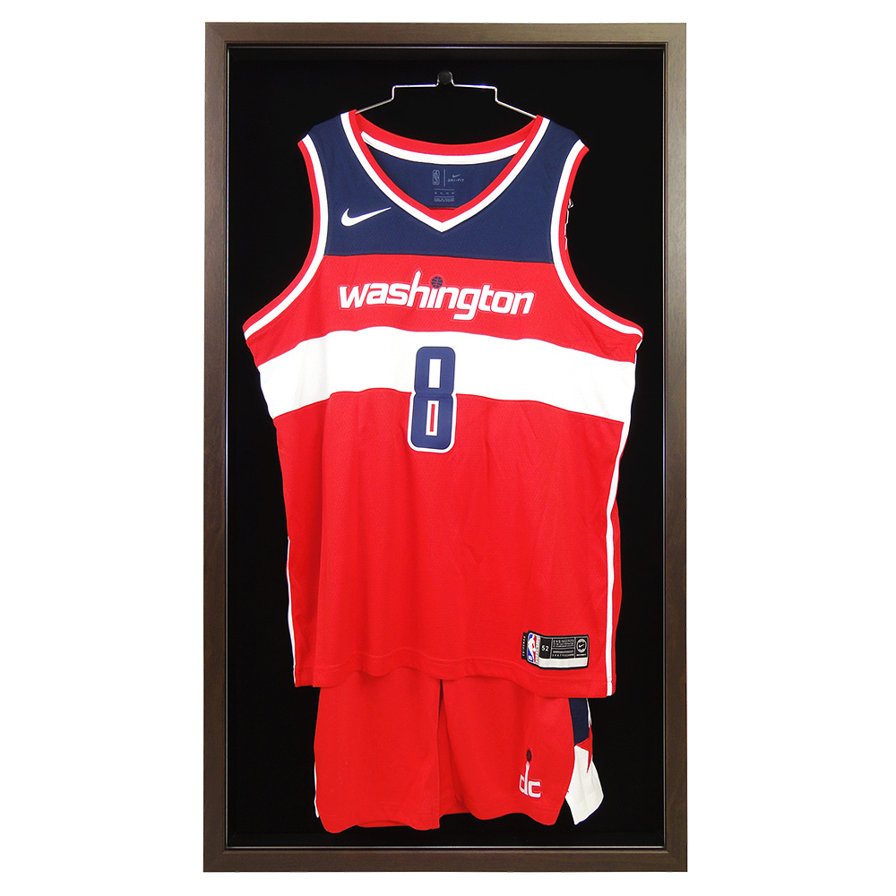 - 「バスケのユニフォームを飾りたいが、普通のケースだとハンガーが見えて恰好悪い」「上下一緒に飾りたい」との要望に応えて製品化されたバスケットボール専用ケース。