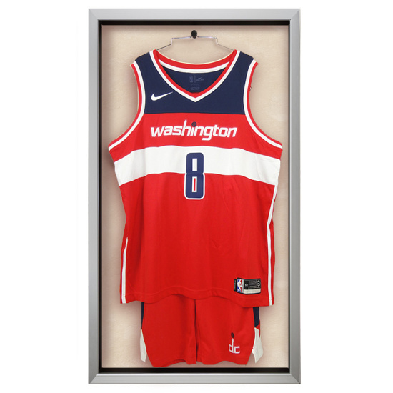 - 「バスケのユニフォームを飾りたいが、普通のケースだとハンガーが見えて恰好悪い」「上下一緒に飾りたい」との要望に応えて製品化されたバスケットボール専用ケース。