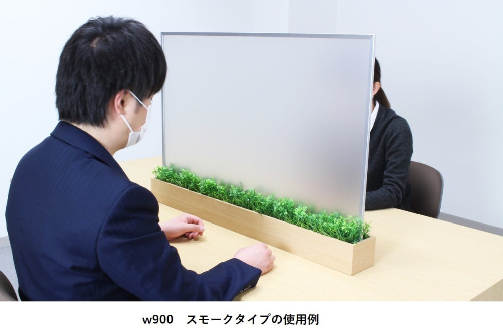 飛沫対策用 造花ポット付アクリル卓上間仕切りパーテーション スモークタイプ W900×H600 (GR4420)