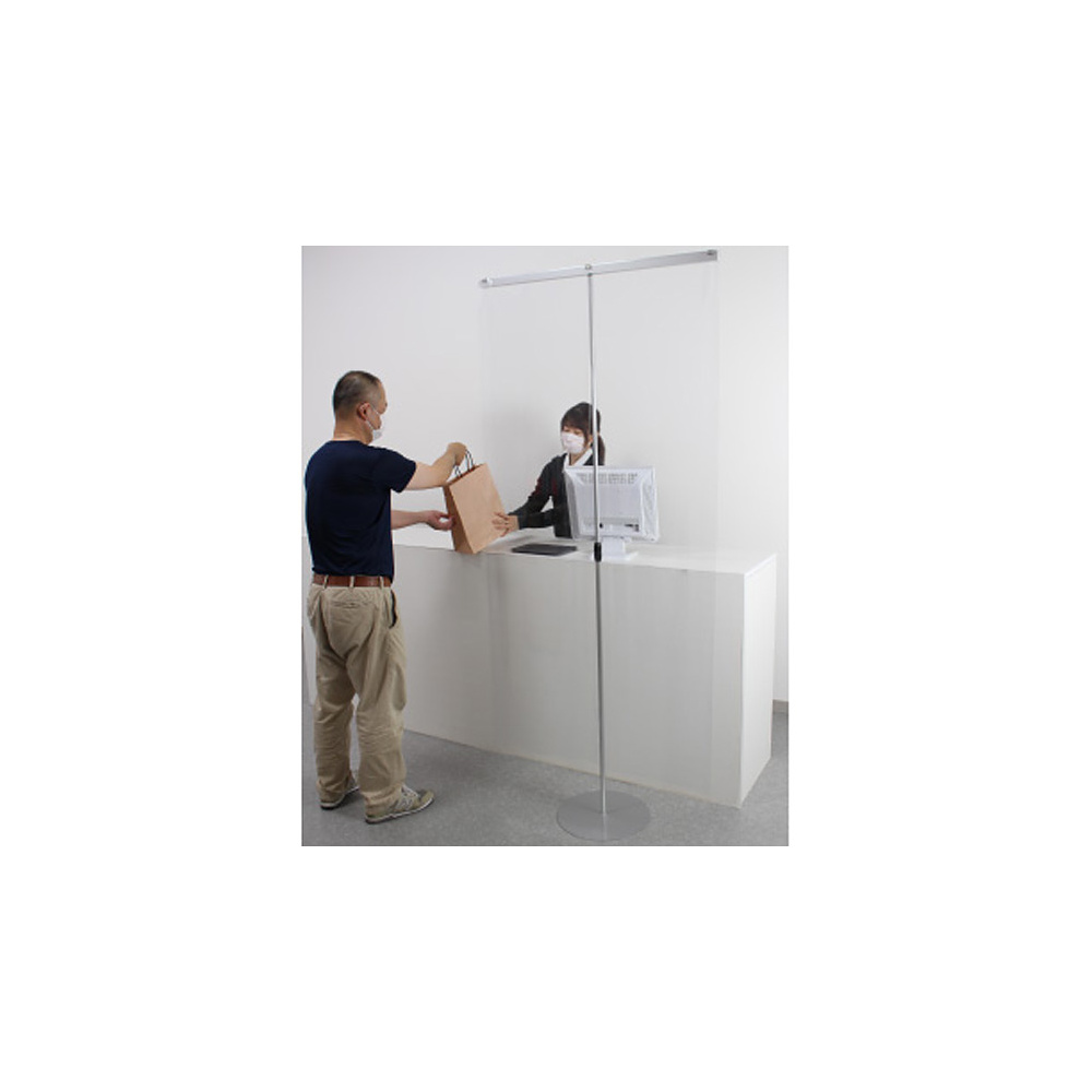 商品説明:飛沫防止対策ビニールシート付きレジ・カウンター フロアパーテーション 1本脚タイプ (4360)