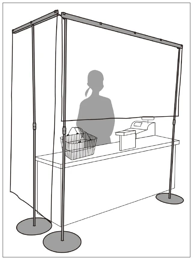 スーパー・物販店・ショップなどの店舗レジカウンター向け飛沫防止対策ビニールシートスタンド