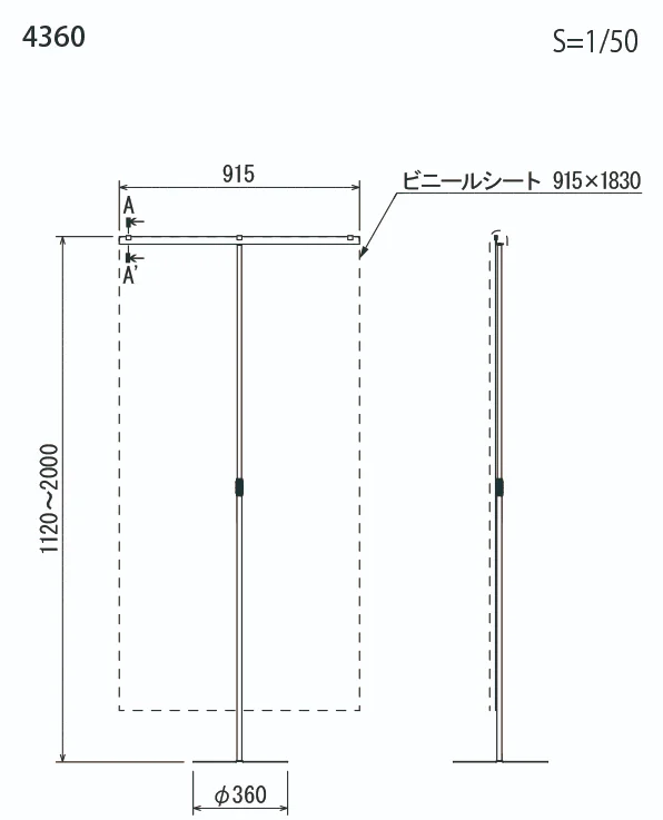 ■寸法図:1本脚タイプ