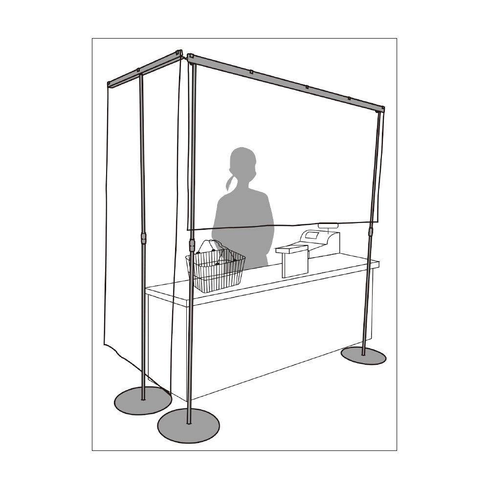 スーパー・物販店・ショップなどの店舗レジカウンター向け飛沫防止対策ビニールシートスタンド
