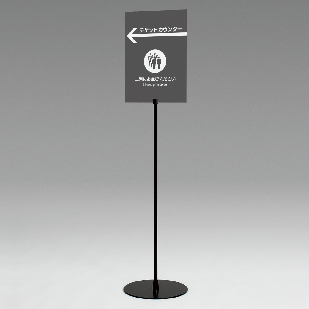 シンプルでオシャレなポールスタンド。付属の白無地面板にデザインシートに貼り込んでお使いください。