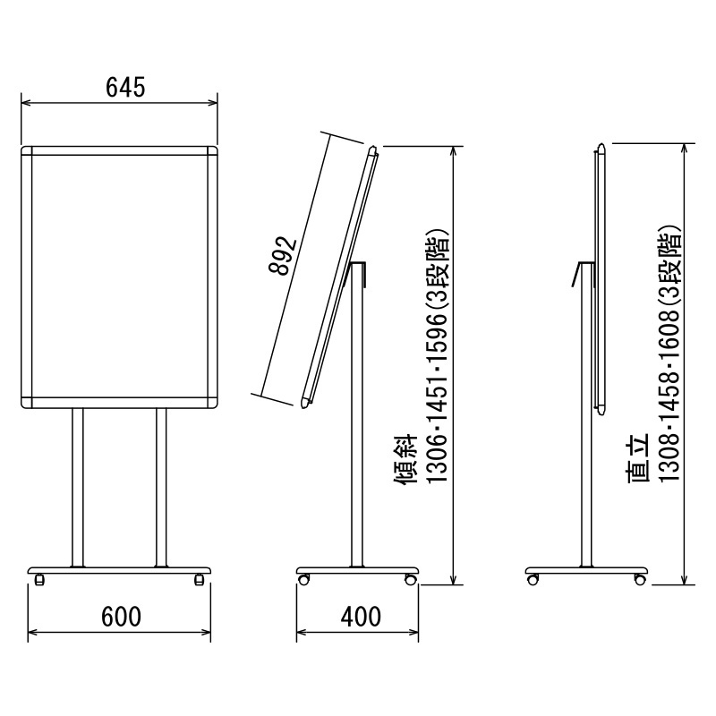 - 設置場所や告知内容に合わせて高さ調整・傾斜/直立の切り替えが可能。