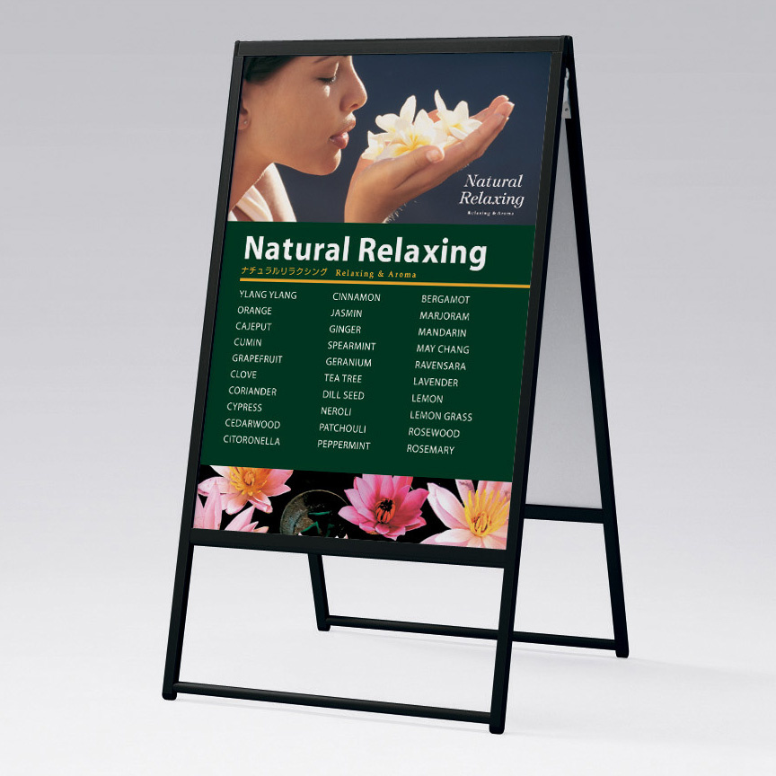 - スリムなシンプルフレームの屋外用、飲食店や物販店のPRポスター、メニューにおすすめです。