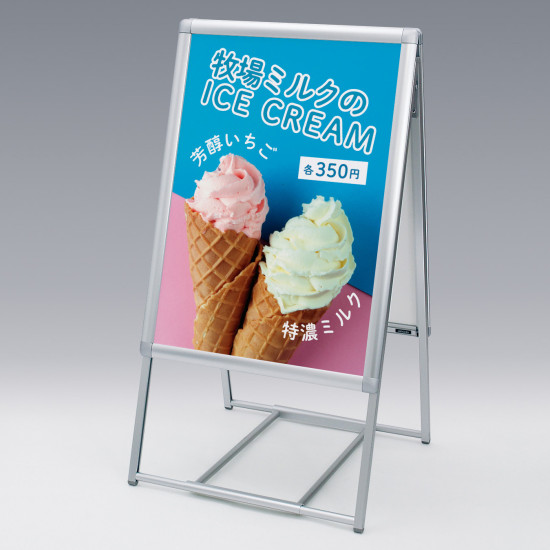 - 4辺開閉のコーナーアールで安全にも配慮した両面A型スタンド。