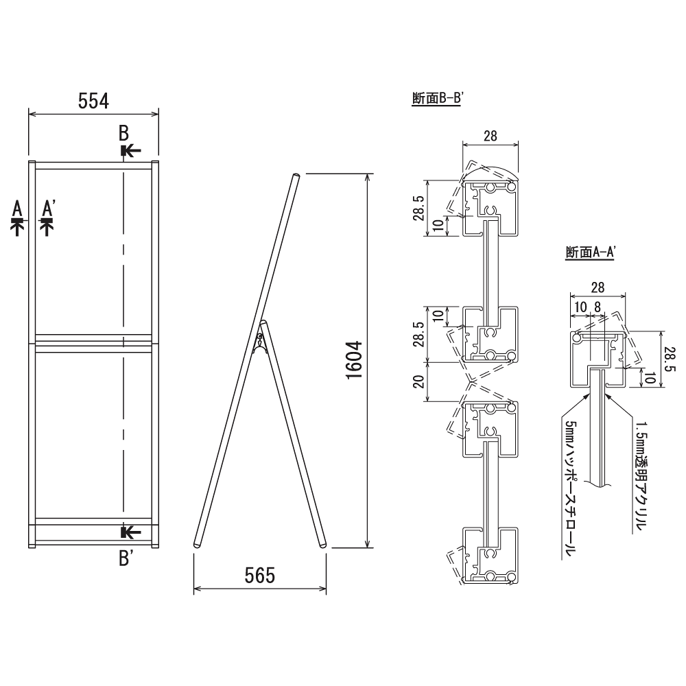 2段4辺開閉式ポスタースタンド アルモード 2816 屋内用 B2