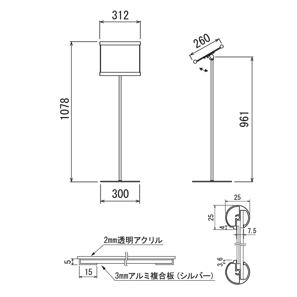 - フロアスタンド アルモード 2831 屋内用 ヨコ A4 (2831-S-A4Y)