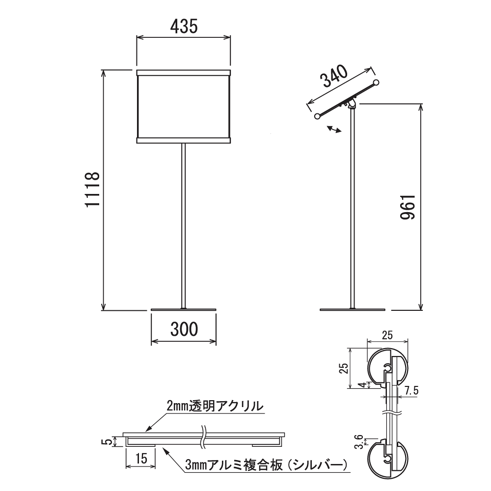 - ベーシックな上下パイプデザインの案内スタンド。