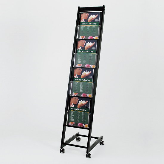 商品説明:パンフレットスタンド アルモード 2501 屋内用 A4×4段1列 ブラック/ブラック (2501-KK)