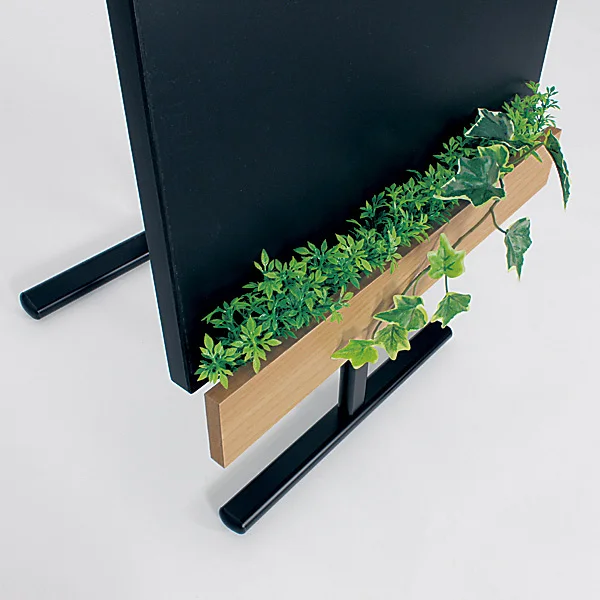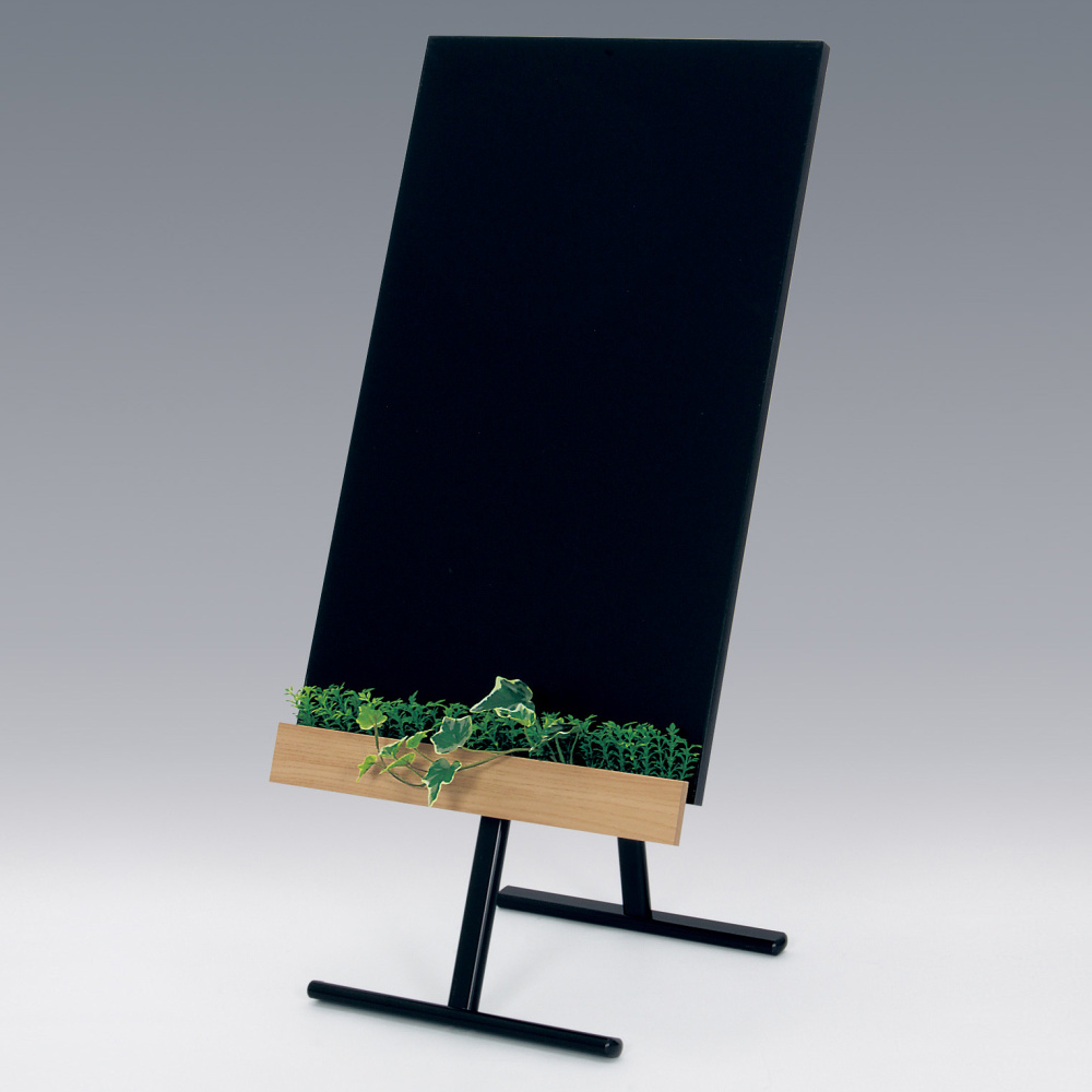 パネル受けにグリーン装飾を装備!パネル部分が外せるマグネット対応の片面マーカースタンド、チョークも使えます。