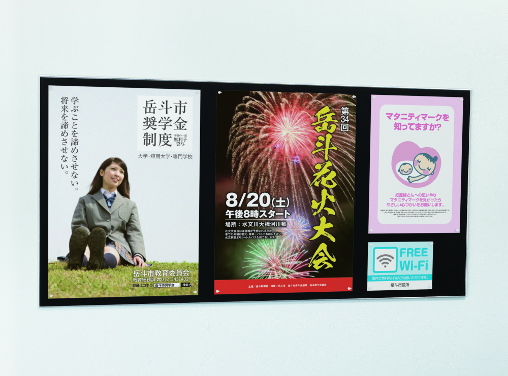 - 壁面と一体感があり、シンプルでスタイリッシュな掲示板です。