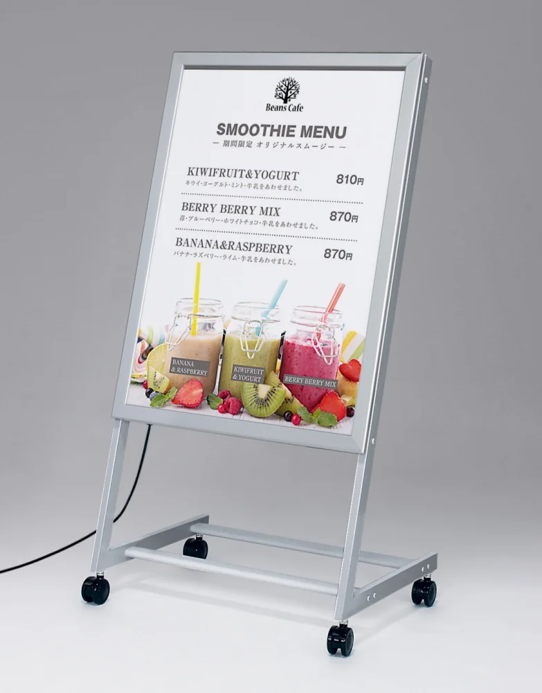 屋外対応のLED内照式ポスタースタンドです。