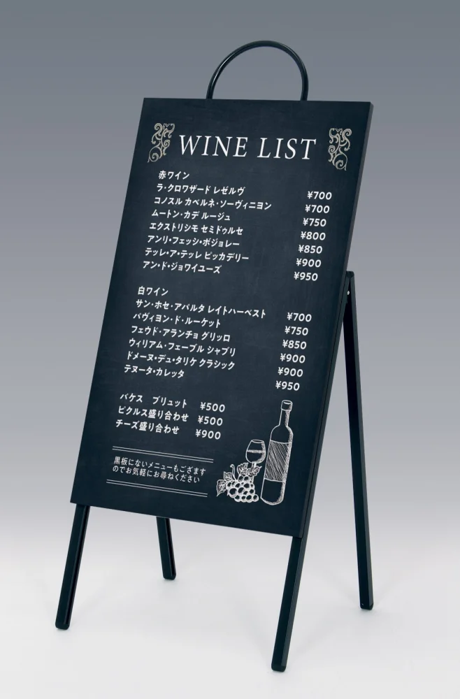 「マーカースタンド アルモード 2614 片面 屋内用 (2614-K-450x750)」の導入をご検討中ですか? 大量注文・複数台のご検討に応じたお見積りのご相談、最短納期や送料、仕様・サイズの確認など、 黒板式A型木製看板選びをまとめてサポートいたします。