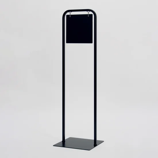 スリムシルエットのT型サインスタンド。無駄を削ぎ落としたデザインが空間に馴染み、表示を引き立てます。