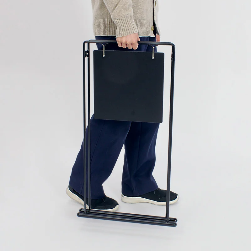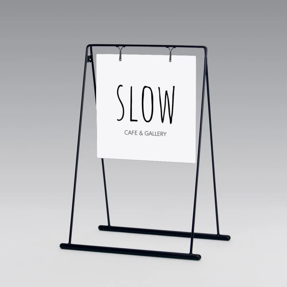 - φ8スチールの極細線材で構成された、洗練された意匠感のA型スタンド看板です。